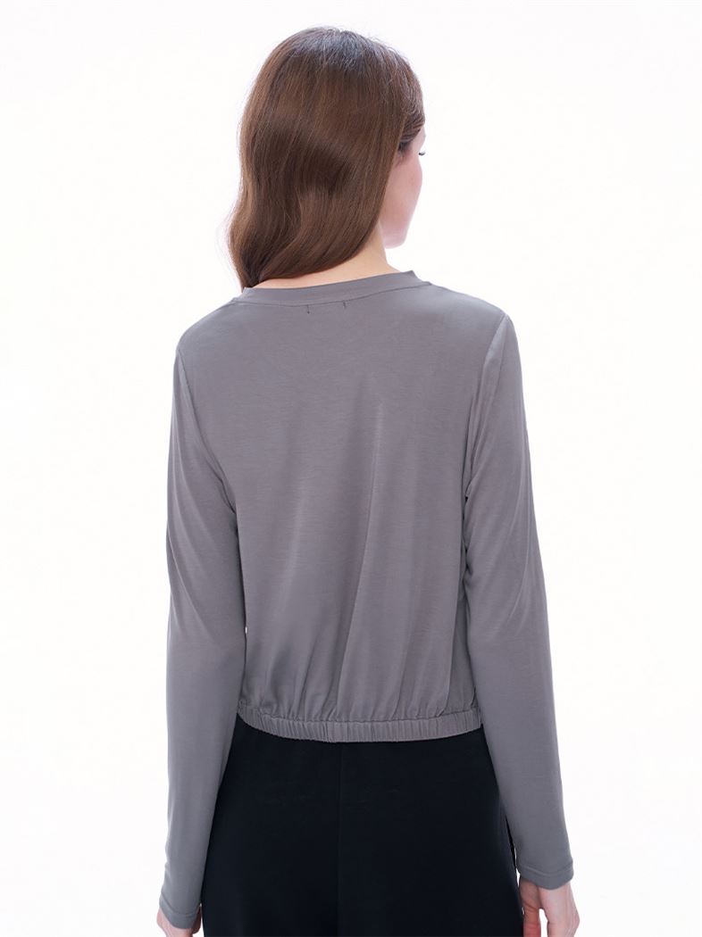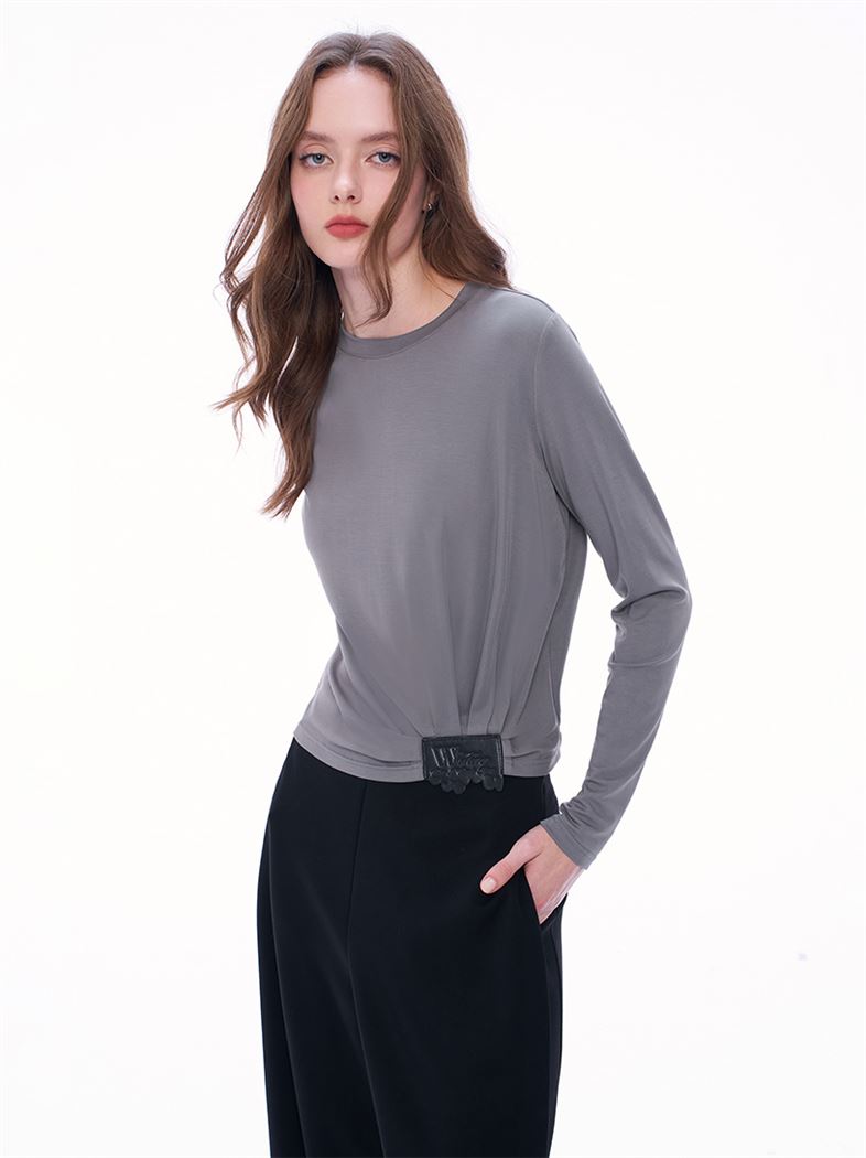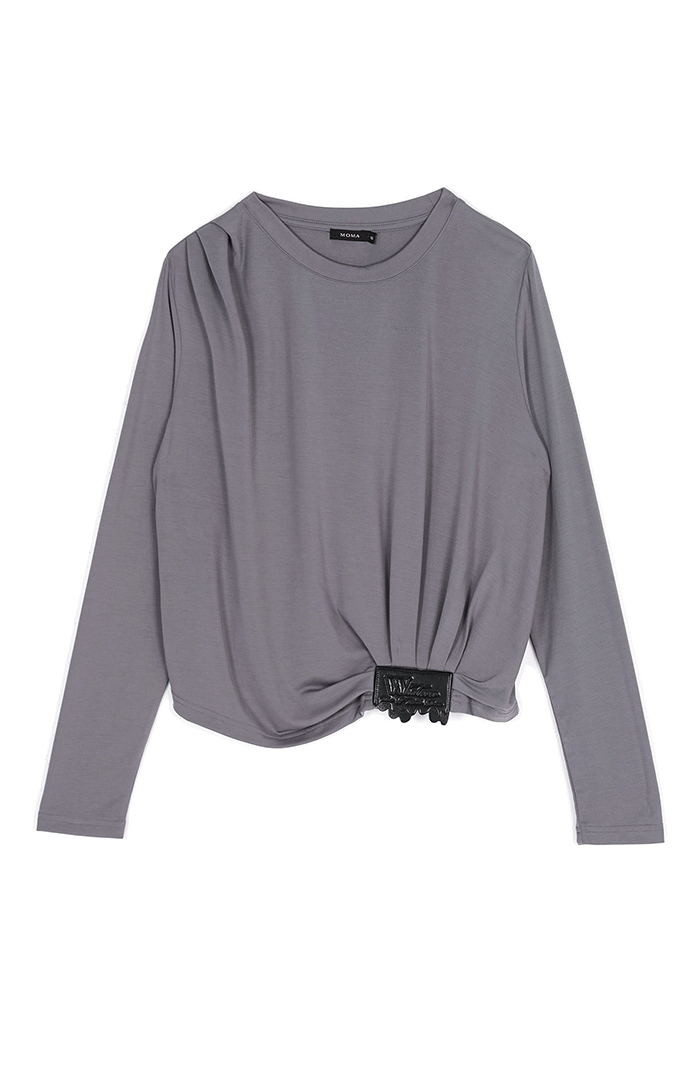 舒適就型字母皮標莫代爾上衣-深灰