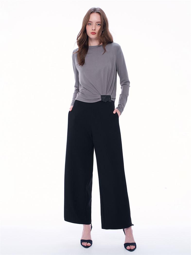 - 圓領與單側肩部抓皺設計,穩固舒適