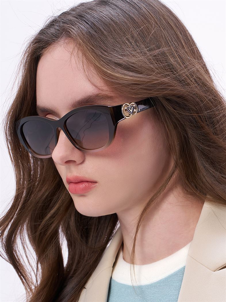 推薦同款黑色穿搭 時髦愛心小臉女神漸層墨鏡-黑 請點我