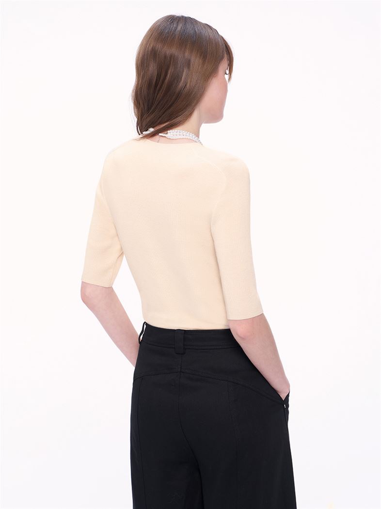 M+ | 親膚包色款氣質羊毛針織上衣-白