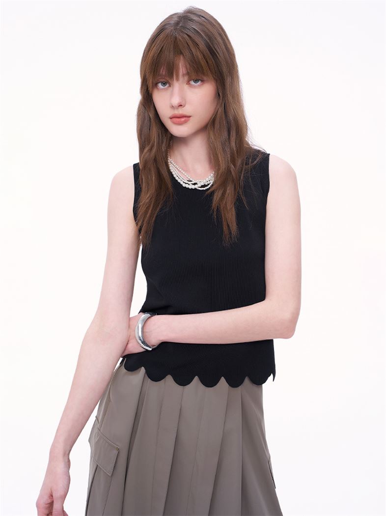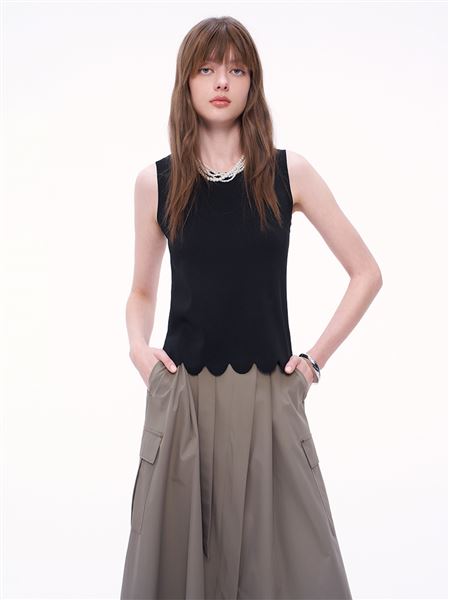 氣質花邊冰爽絲針織背心-黑