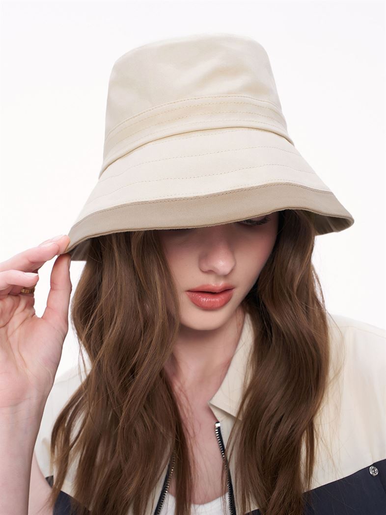 推薦同款咖啡色穿搭 100%棉簡約撞色遮陽漁夫帽-咖啡 請點我