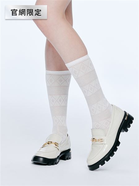 推薦同款灰色穿搭 經典學院風幾何菱格紋中筒襪 | 官網限定-灰 請點我
