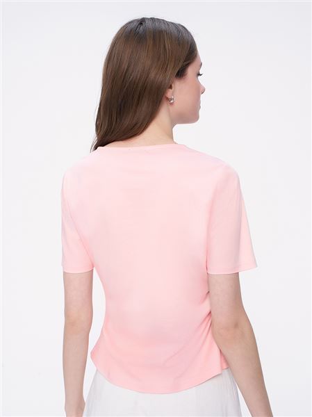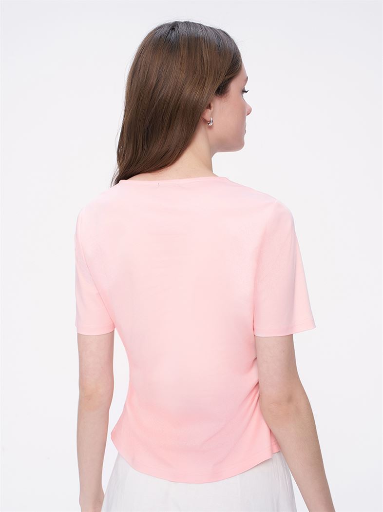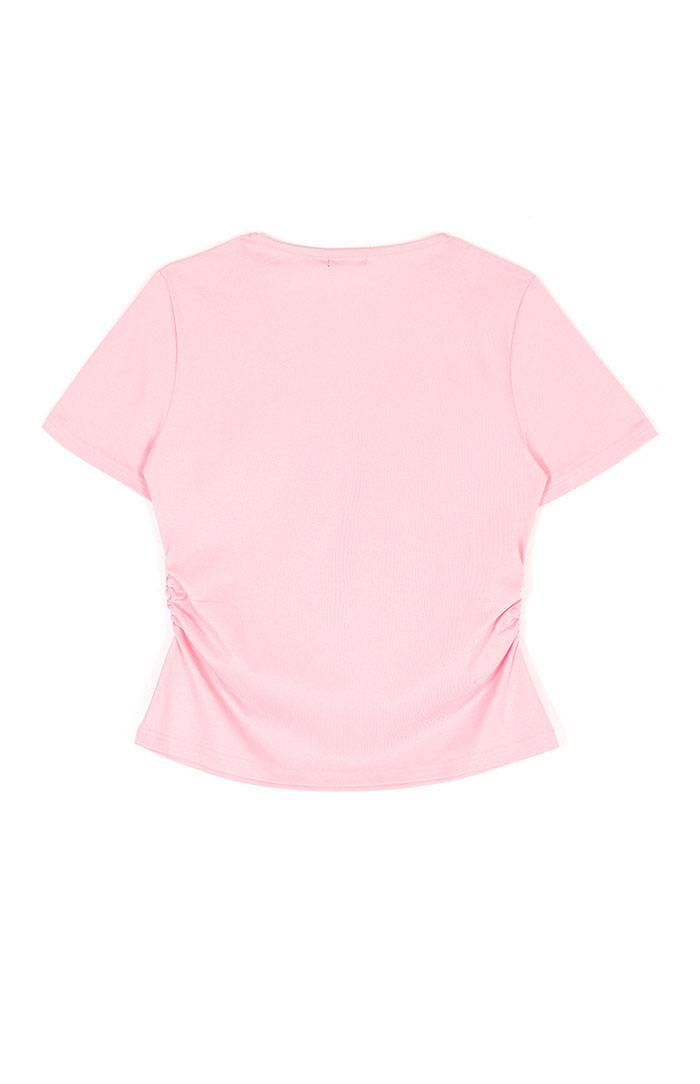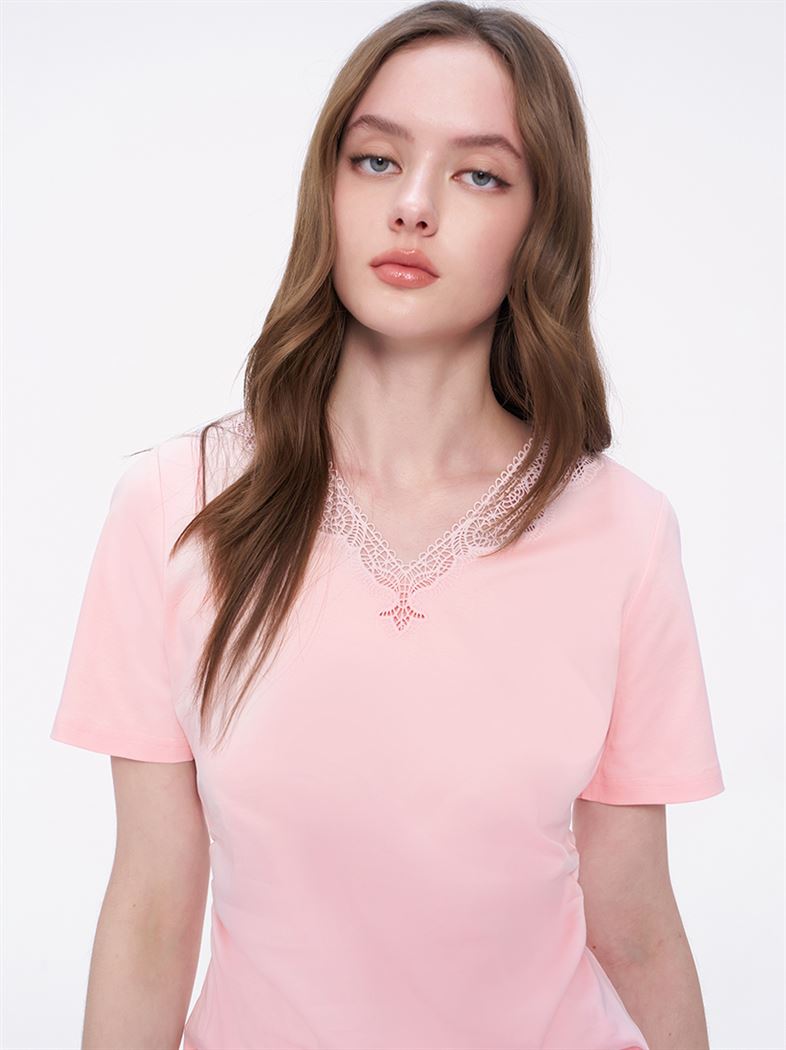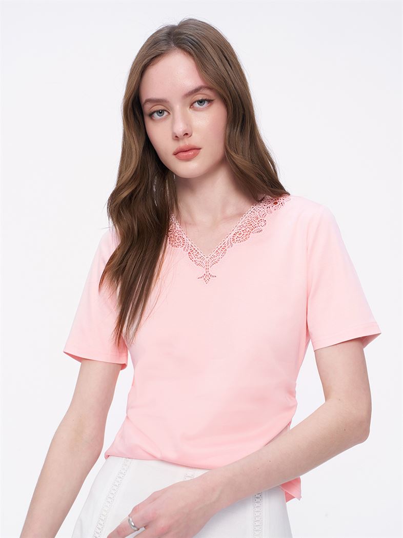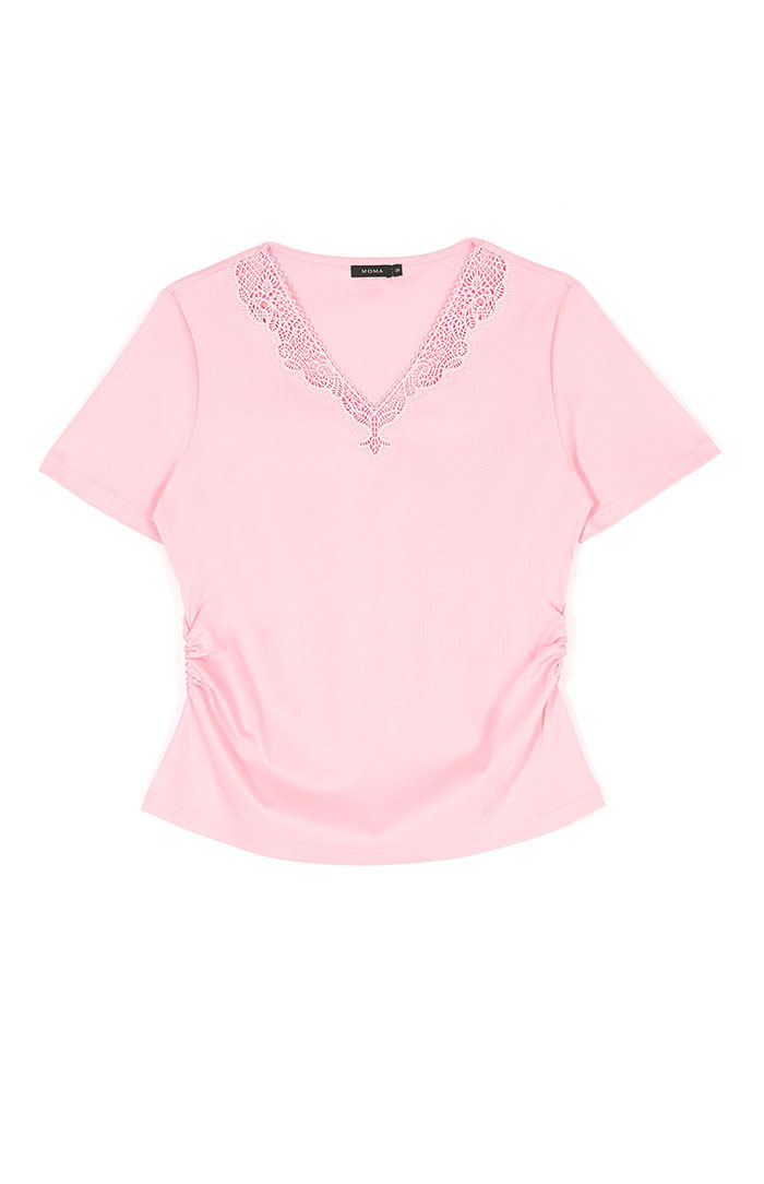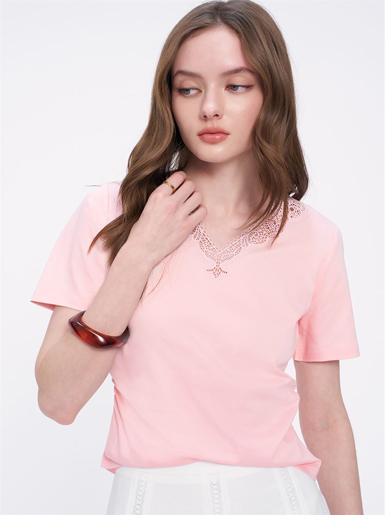 精緻鏤空雕花蕾絲絲光棉上衣-粉