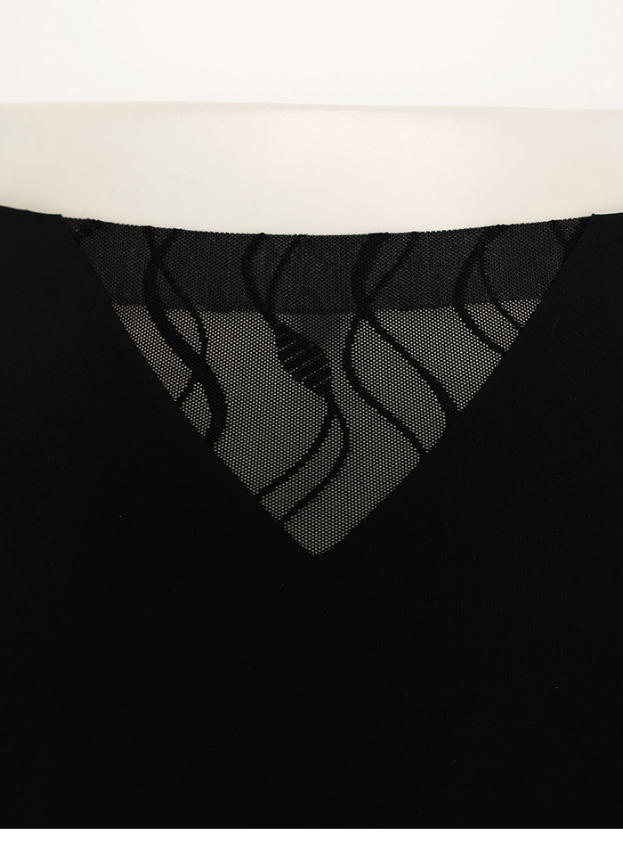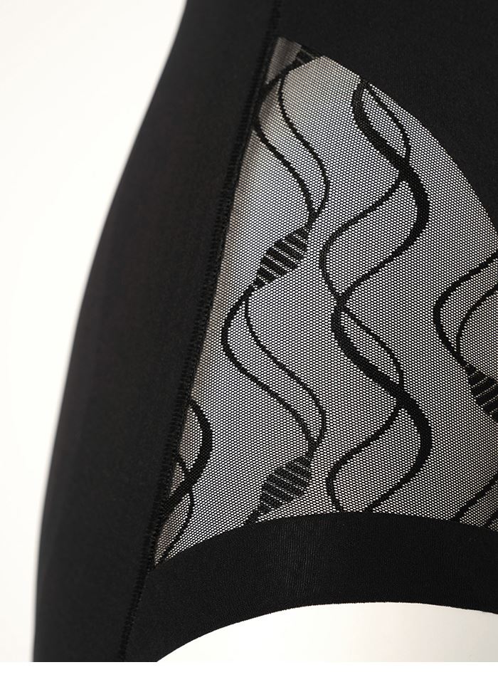 - 兩側拼接透膚波浪網紗,增添微性感心機