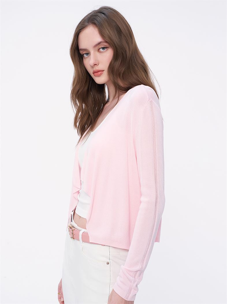 - 開襟不規則垂墜感造型,延伸比例、打造層次感