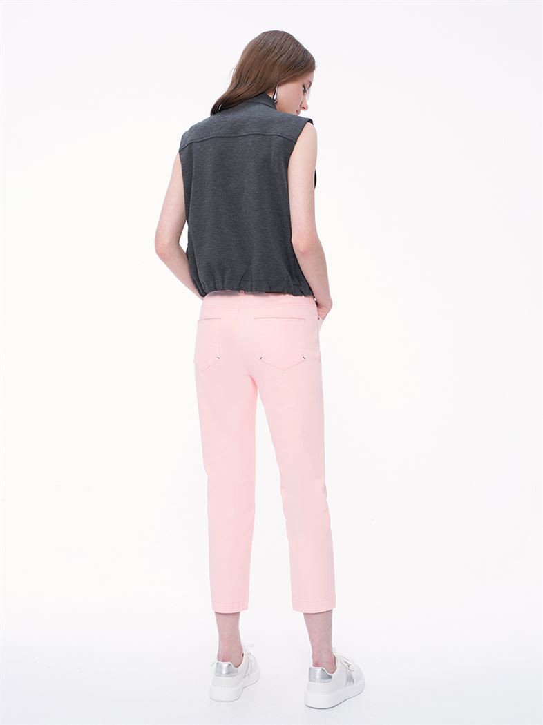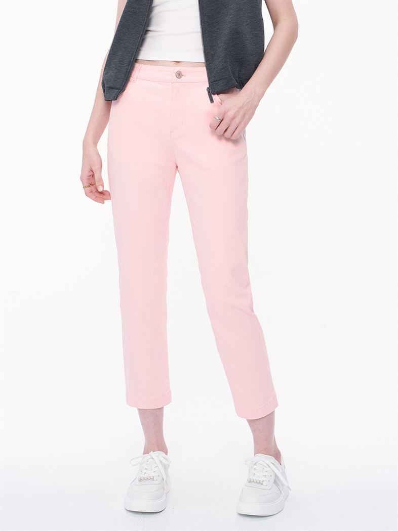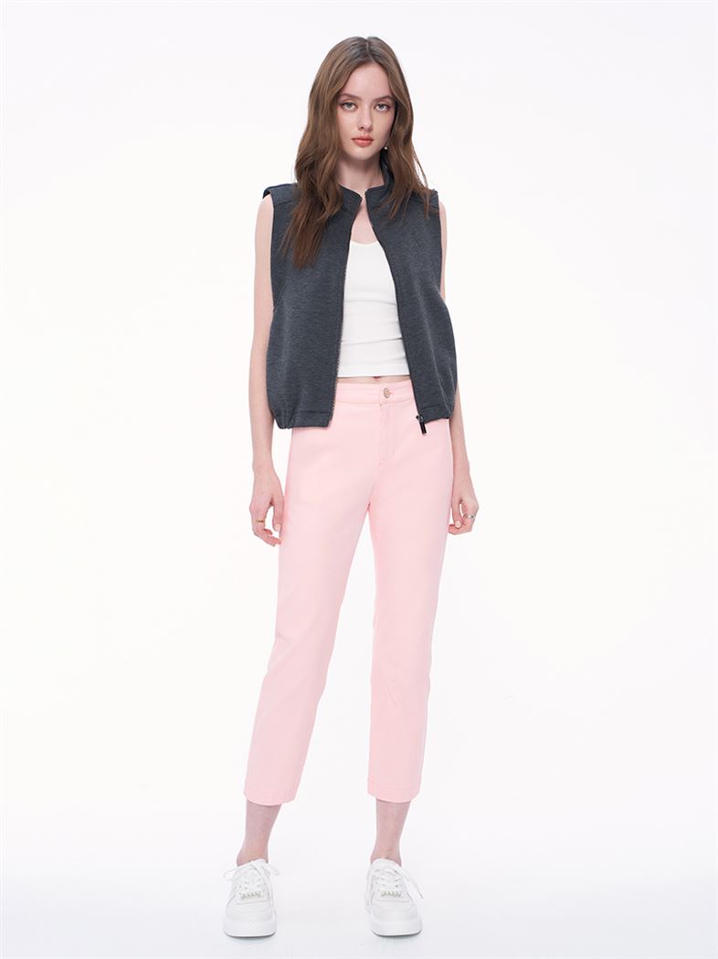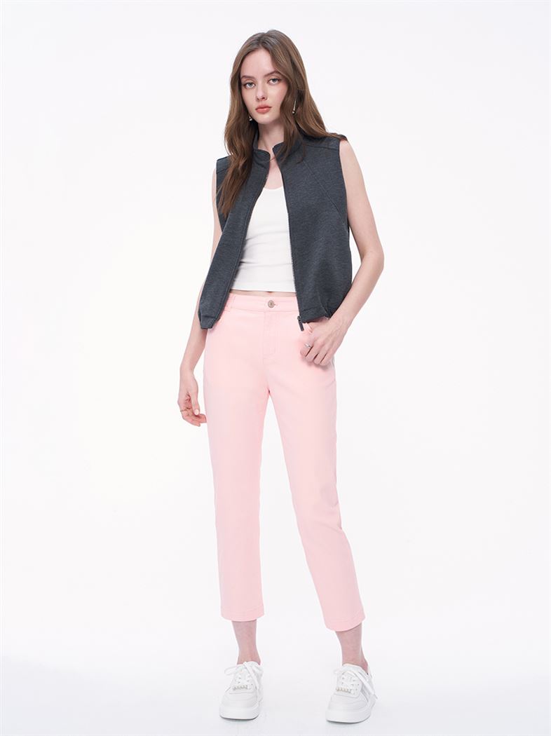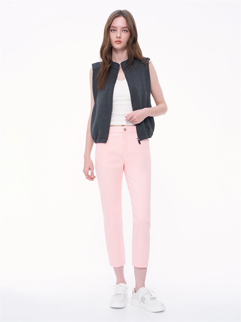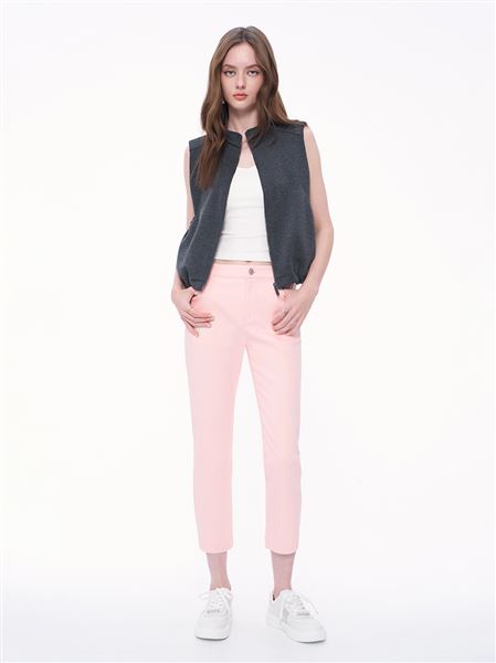 - 九分小直筒褲版型與棉彈布面料,彈力顯瘦纖長