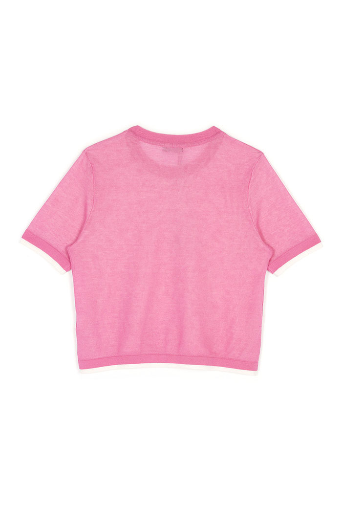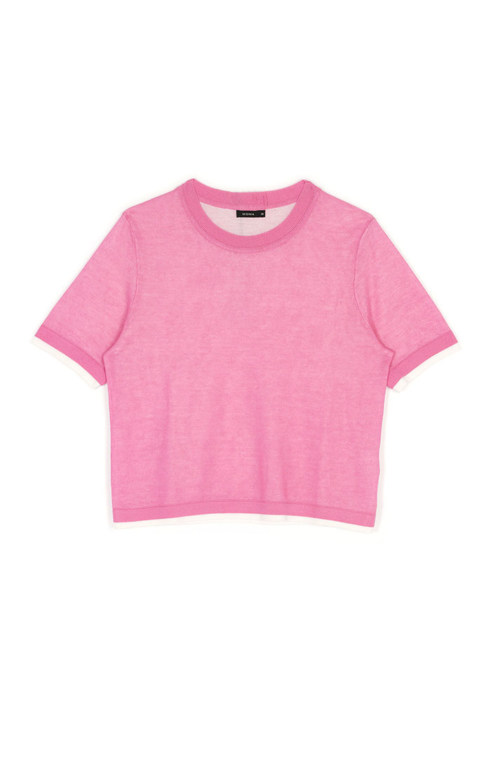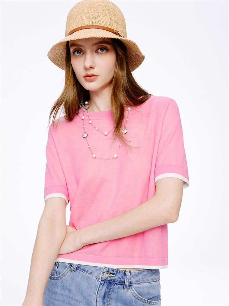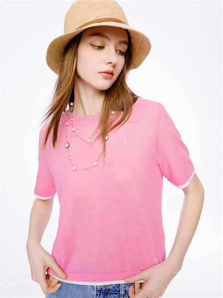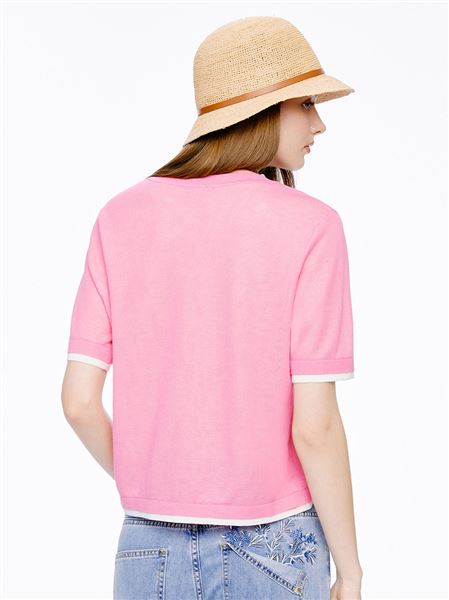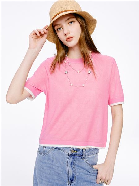 - 兩側袖口與衣襬撞色拼接造型,打造假兩件層次感