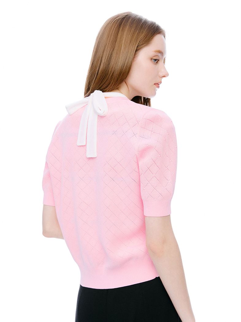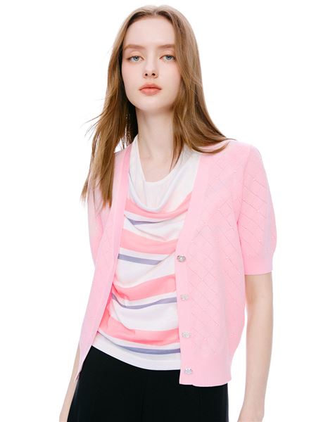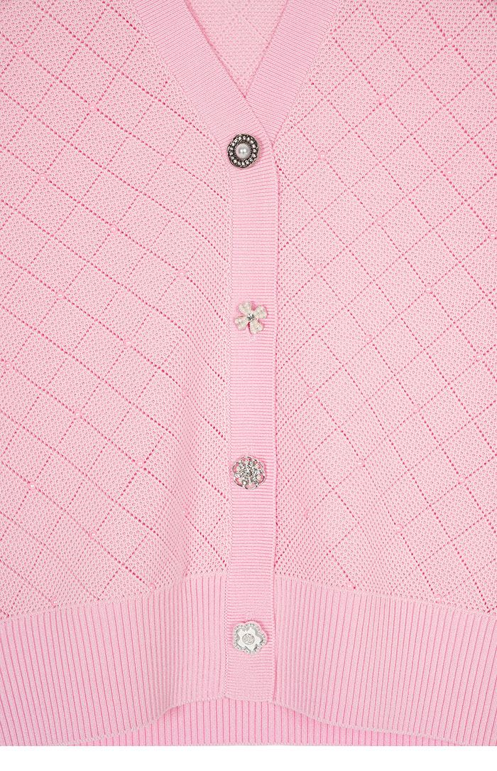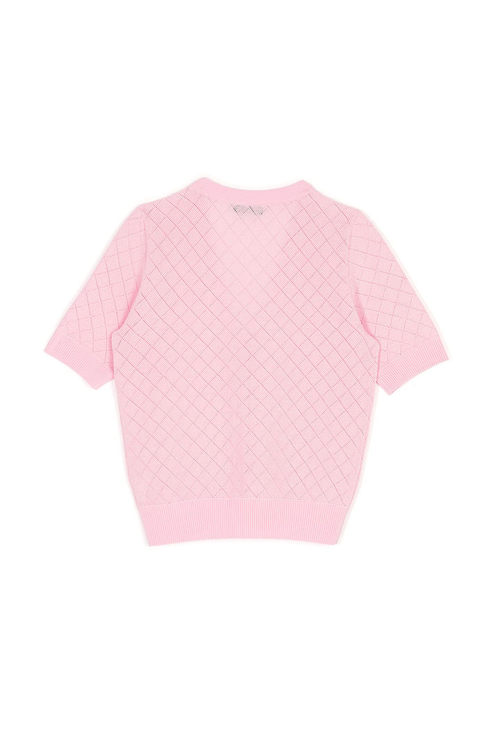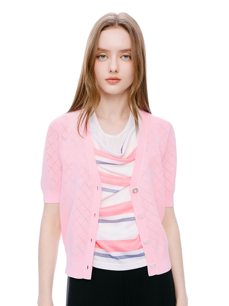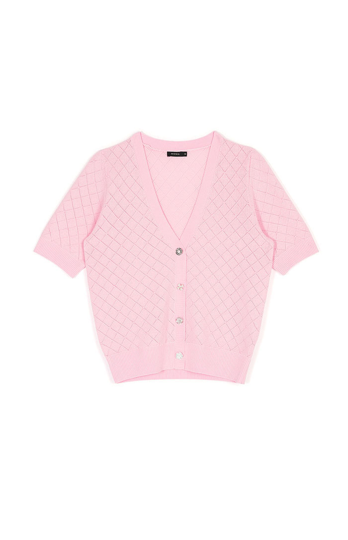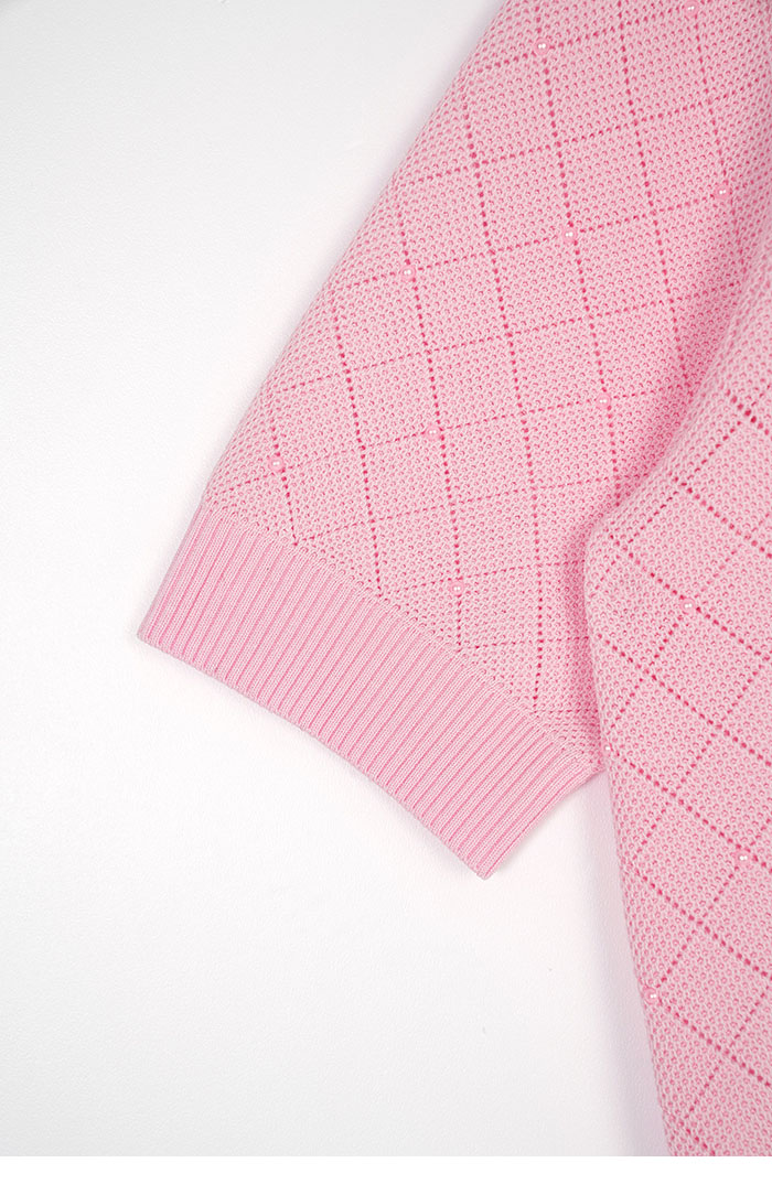 精緻珍珠菱格紋冰爽絲針織外套-粉