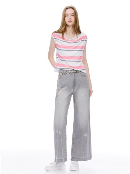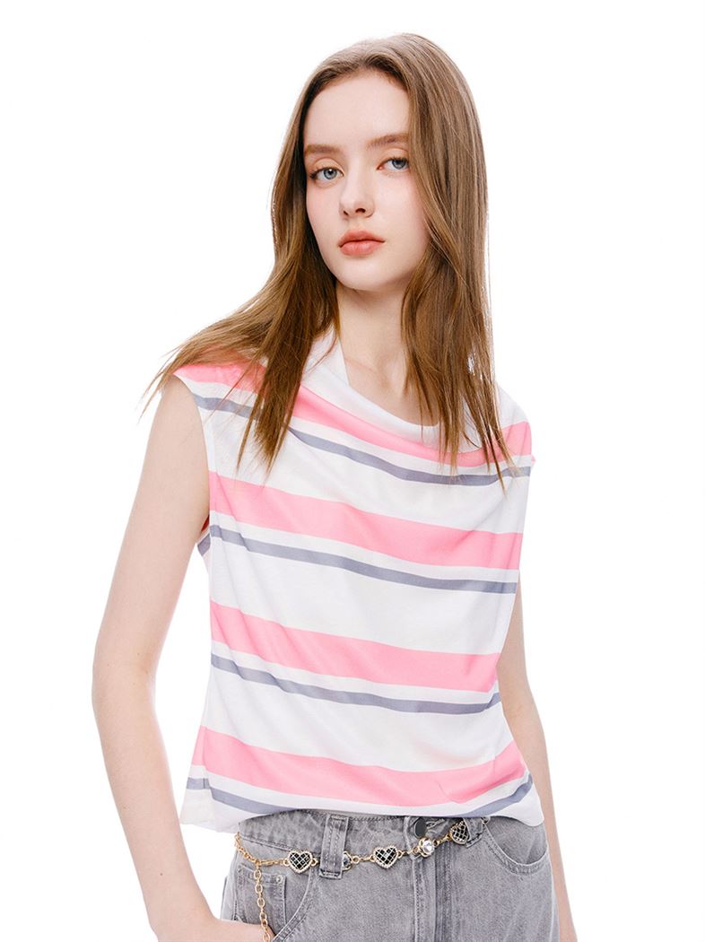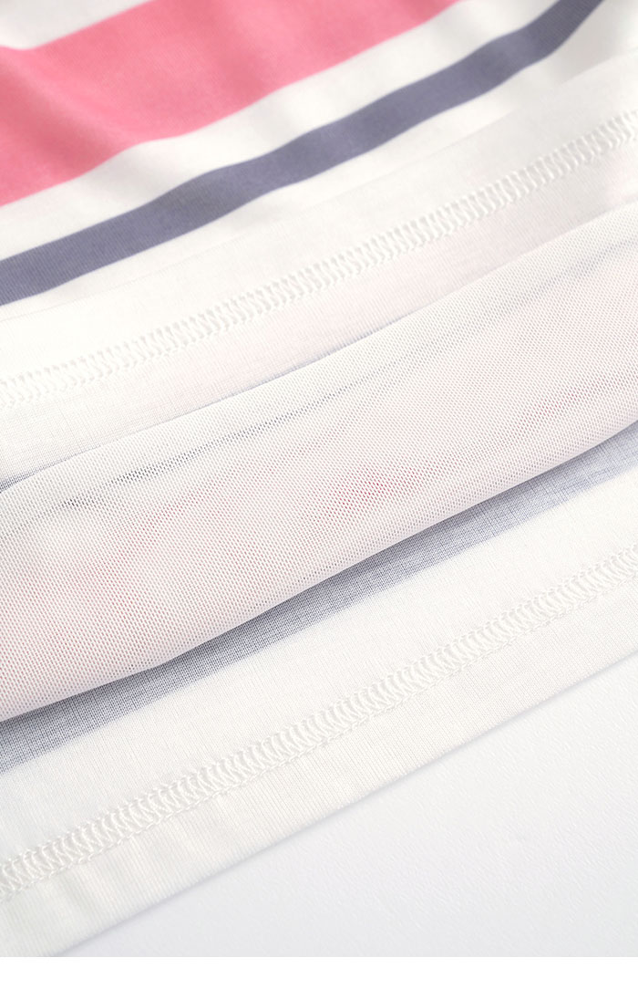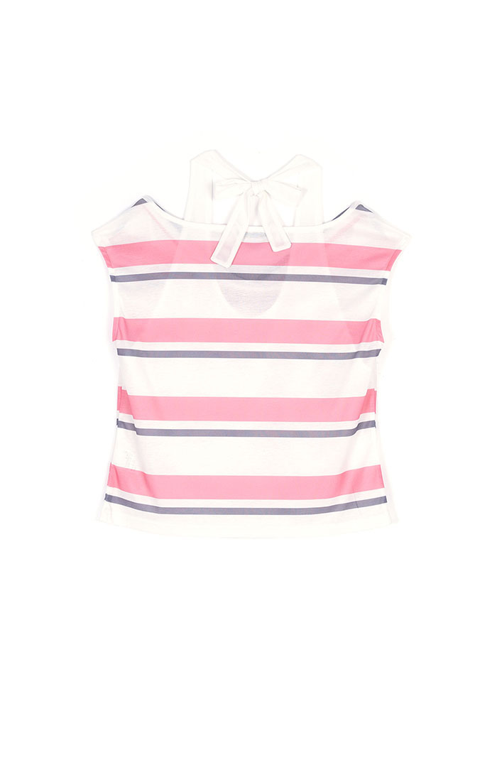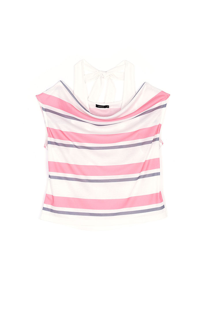 推薦同款藍色穿搭 陽光少女條紋假兩件綁帶上衣-藍 請點我