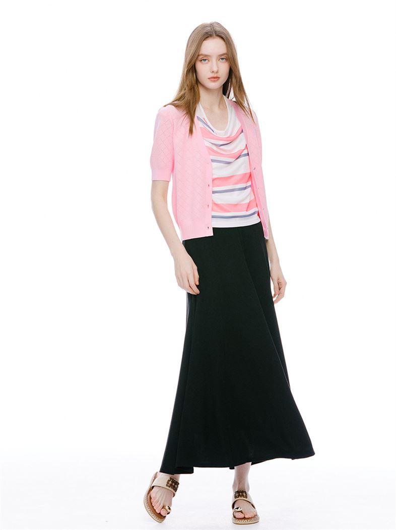 推薦穿搭 精緻珍珠菱格紋冰爽絲針織外套-粉 請點我