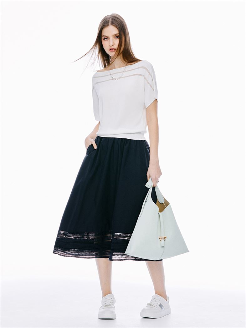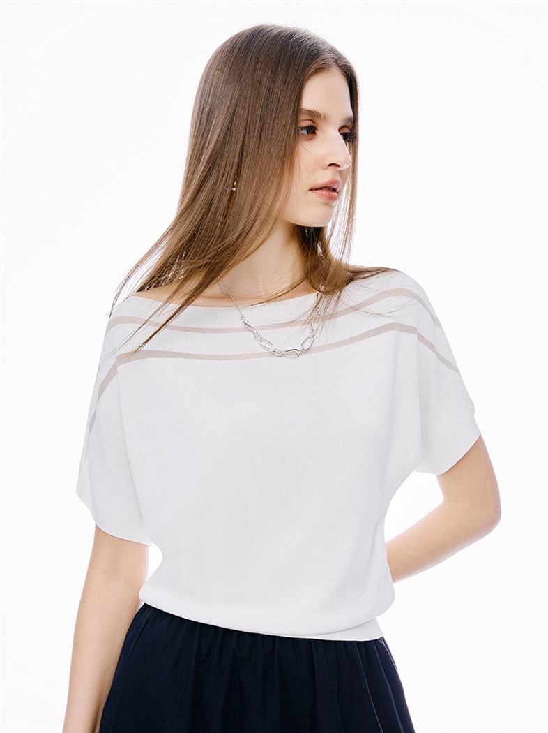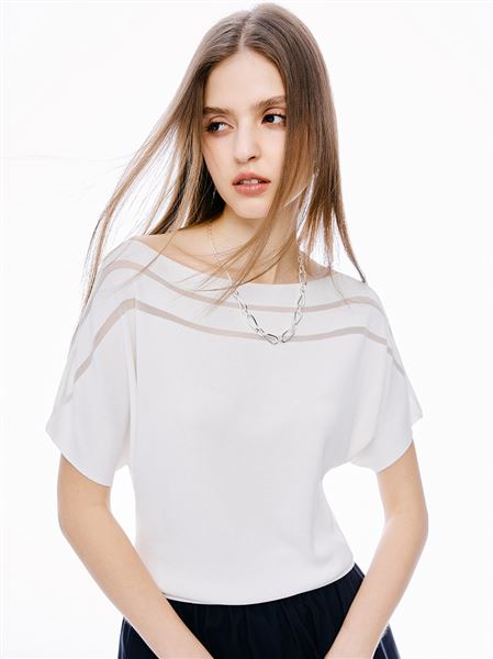 推薦同款淺藍色穿搭 迷人線條冰爽絲針織上衣-淺藍 請點我