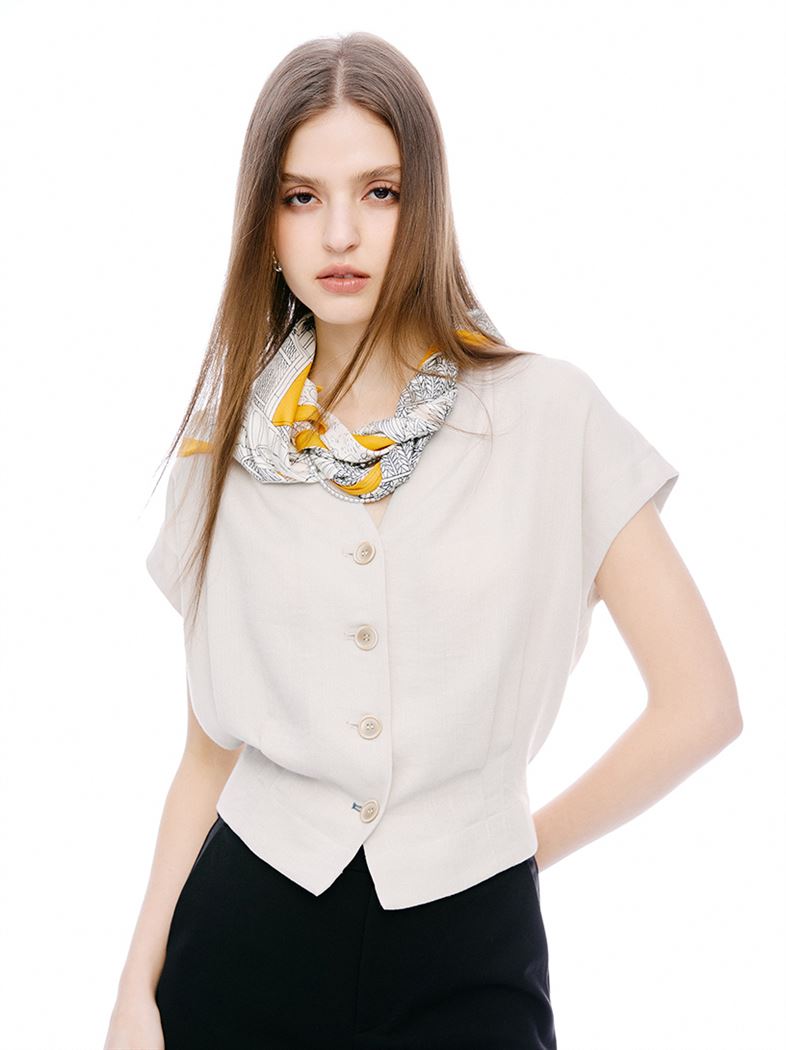 推薦同款咖啡色穿搭 M+ | 簡約仿麻顯瘦零負擔蓋袖上衣-咖 請點我