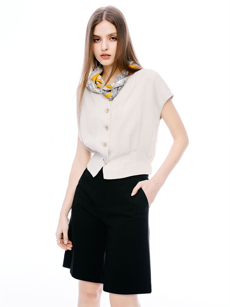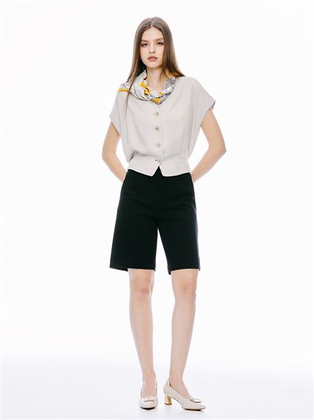 推薦穿搭 俐落都會修身高腰五分褲-黑 請點我
