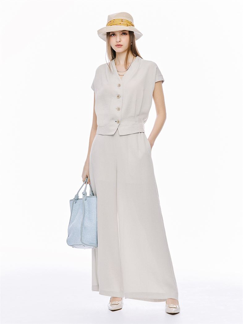 推薦成套穿搭 M+ | 簡約仿麻顯瘦零負擔長腿寬褲-灰 請點我