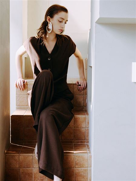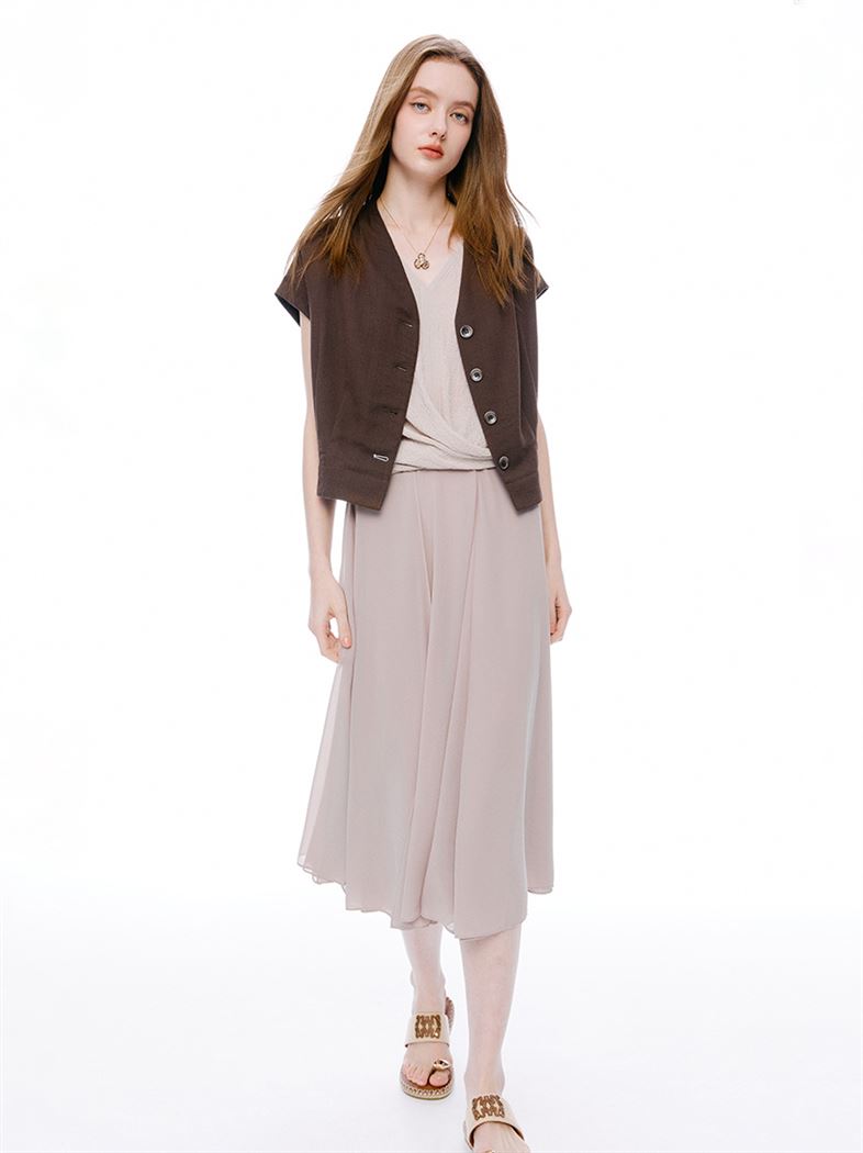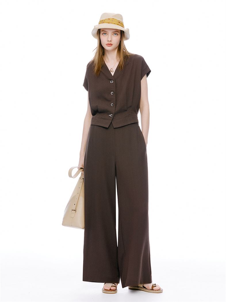 推薦成套穿搭 M+ | 簡約仿麻顯瘦零負擔長腿寬褲-咖 請點我