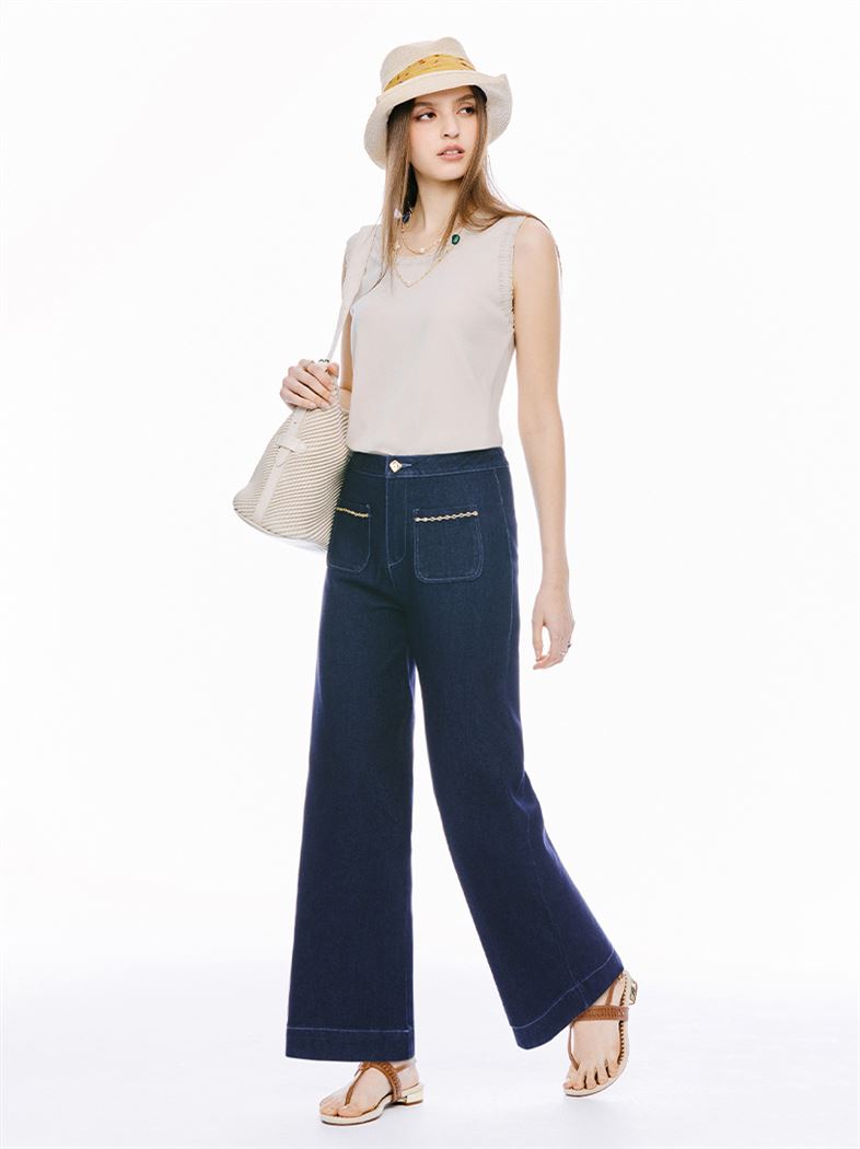推薦穿搭 精緻鍊條中高腰牛仔直筒褲 請點我