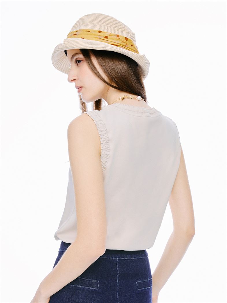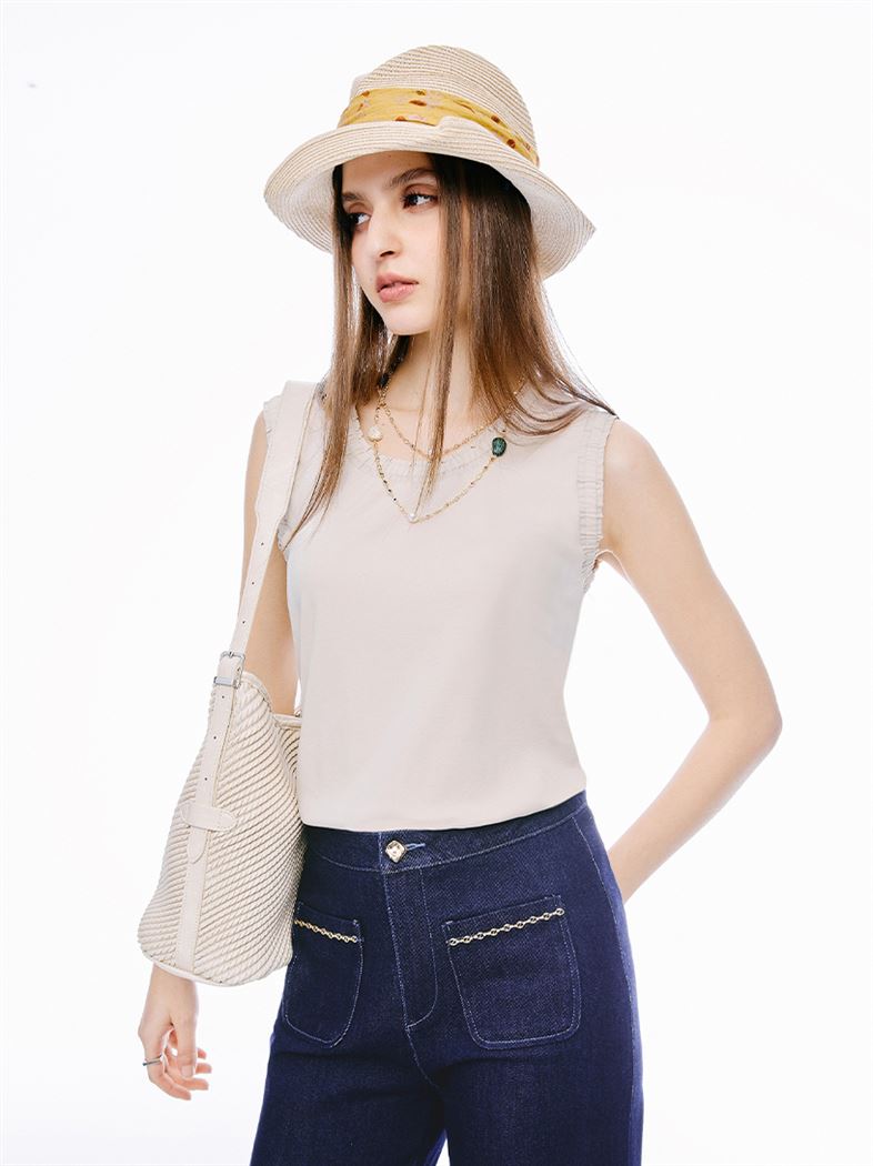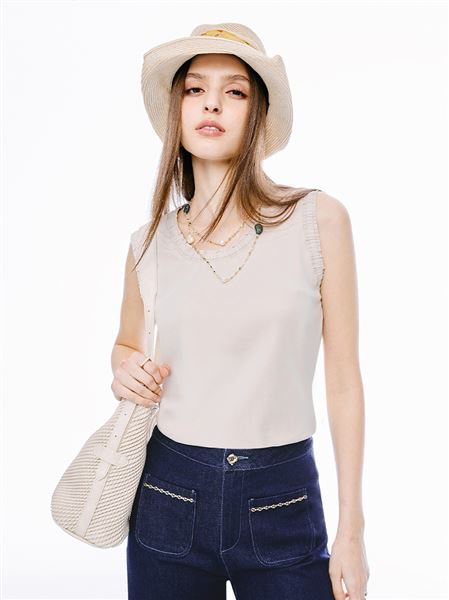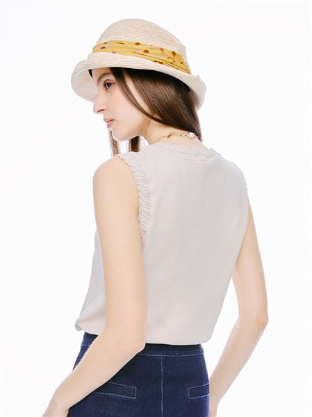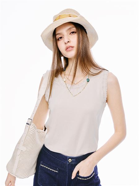 推薦同款黑色穿搭 甜美荷葉邊太空棉背心-黑 請點我