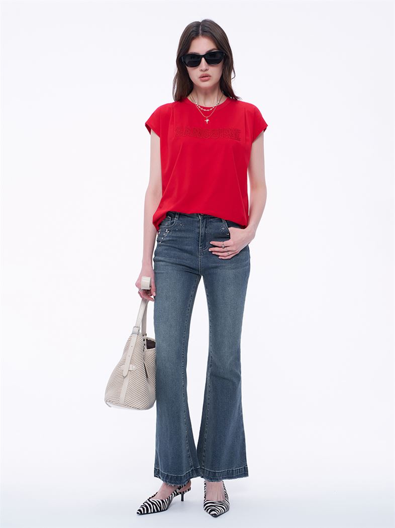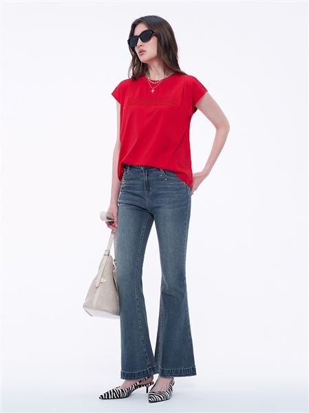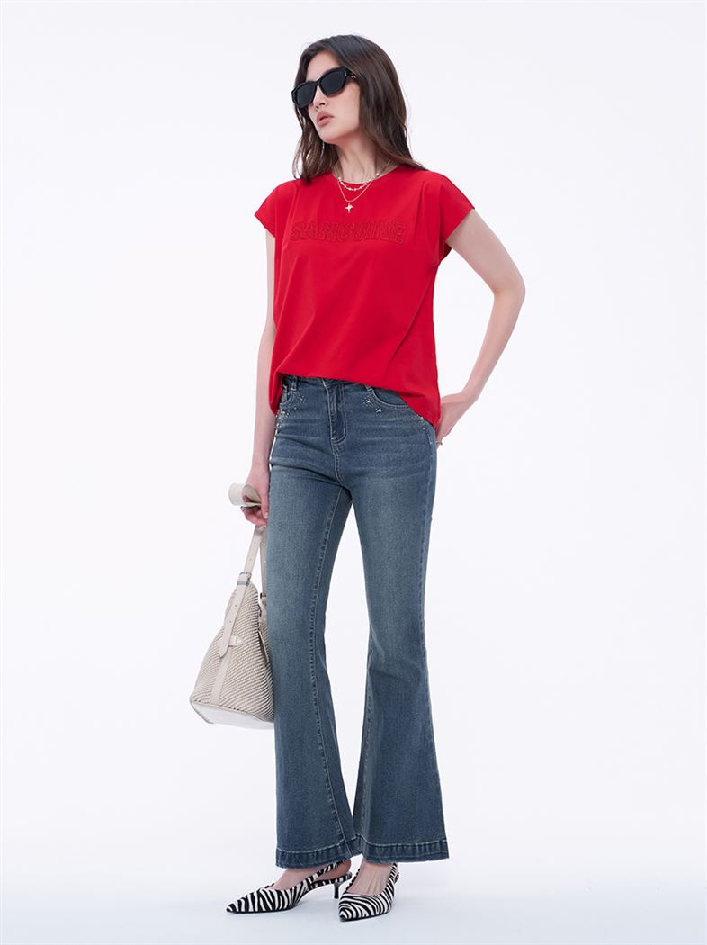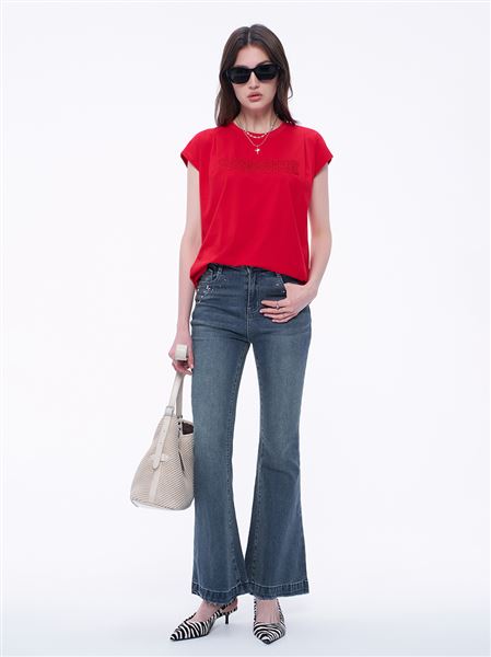 推薦穿搭 復古刷色水鑽亮片小喇叭牛仔褲 請點我