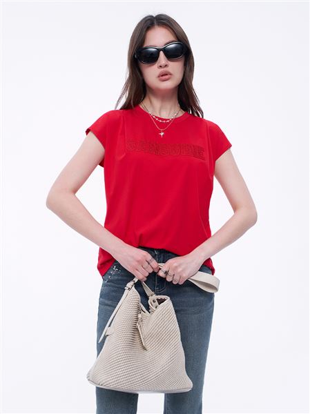 推薦同款淺綠色穿搭 活力字母刺繡小蓋袖上衣-淺綠 請點我