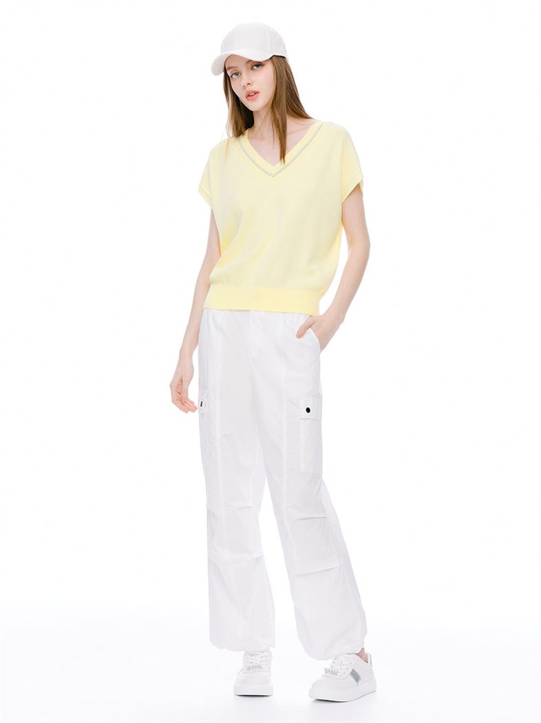 推薦同款白色穿搭 隨性撞色冰爽絲小蓋袖上衣-白 請點我