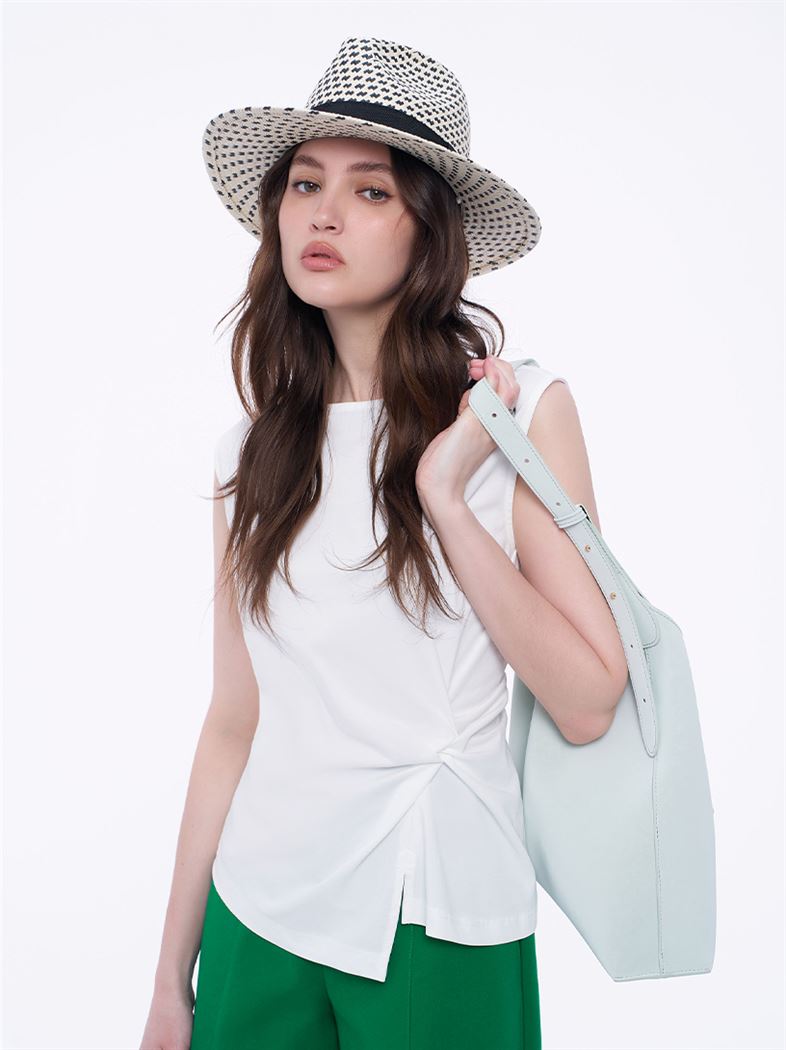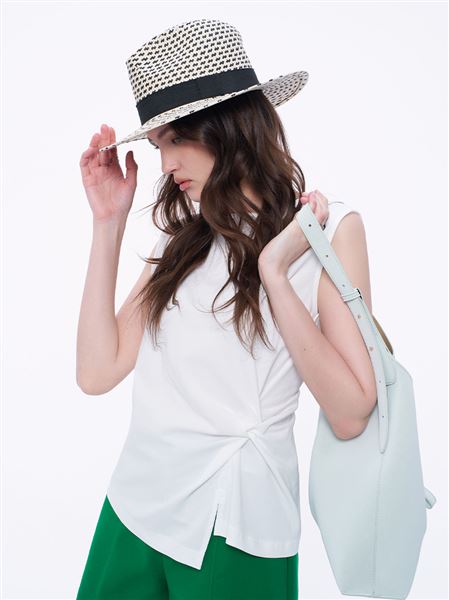 推薦同款黑色穿搭 M+ | 自在節奏舒柔扭結設計感上衣-黑 請點我