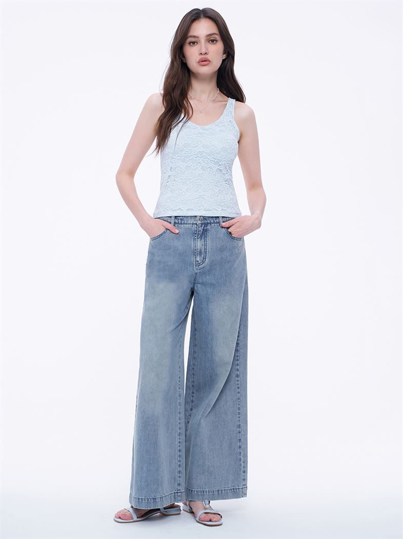 推薦穿搭 時髦復古水洗修身牛仔直筒寬褲 請點我