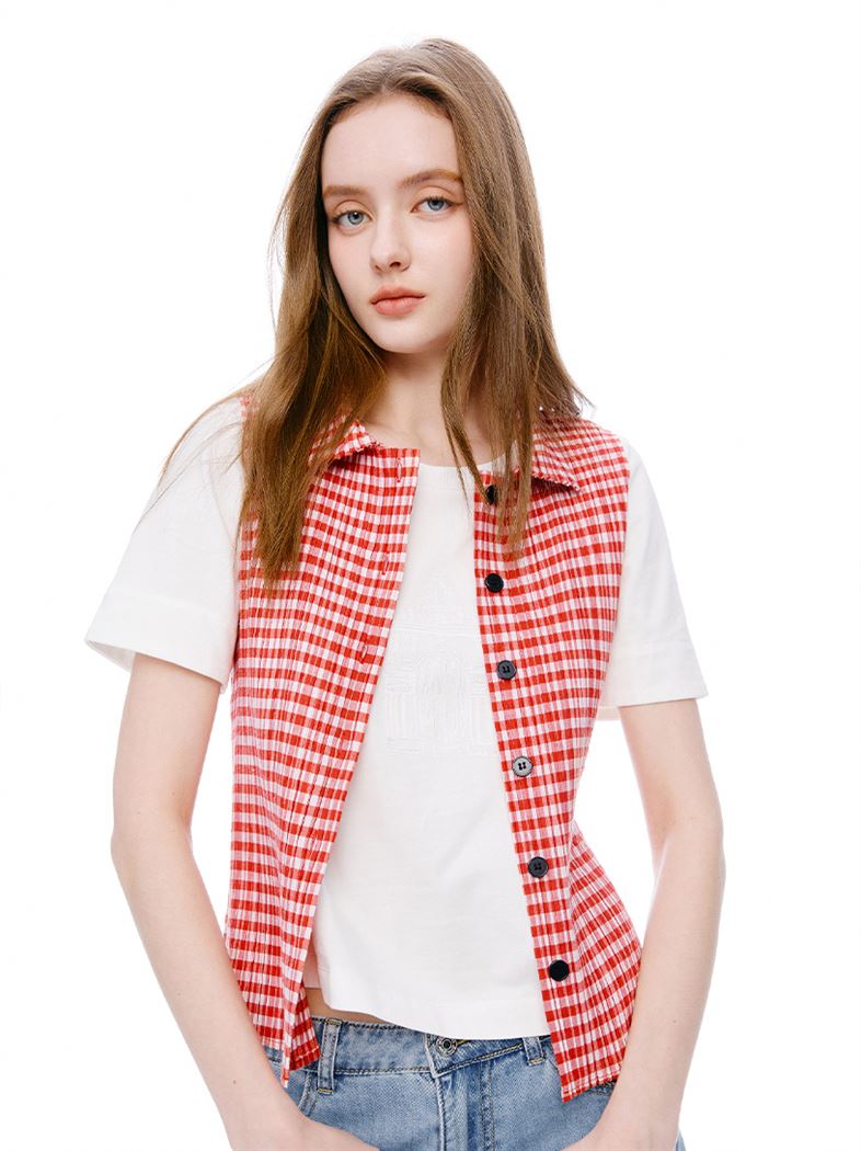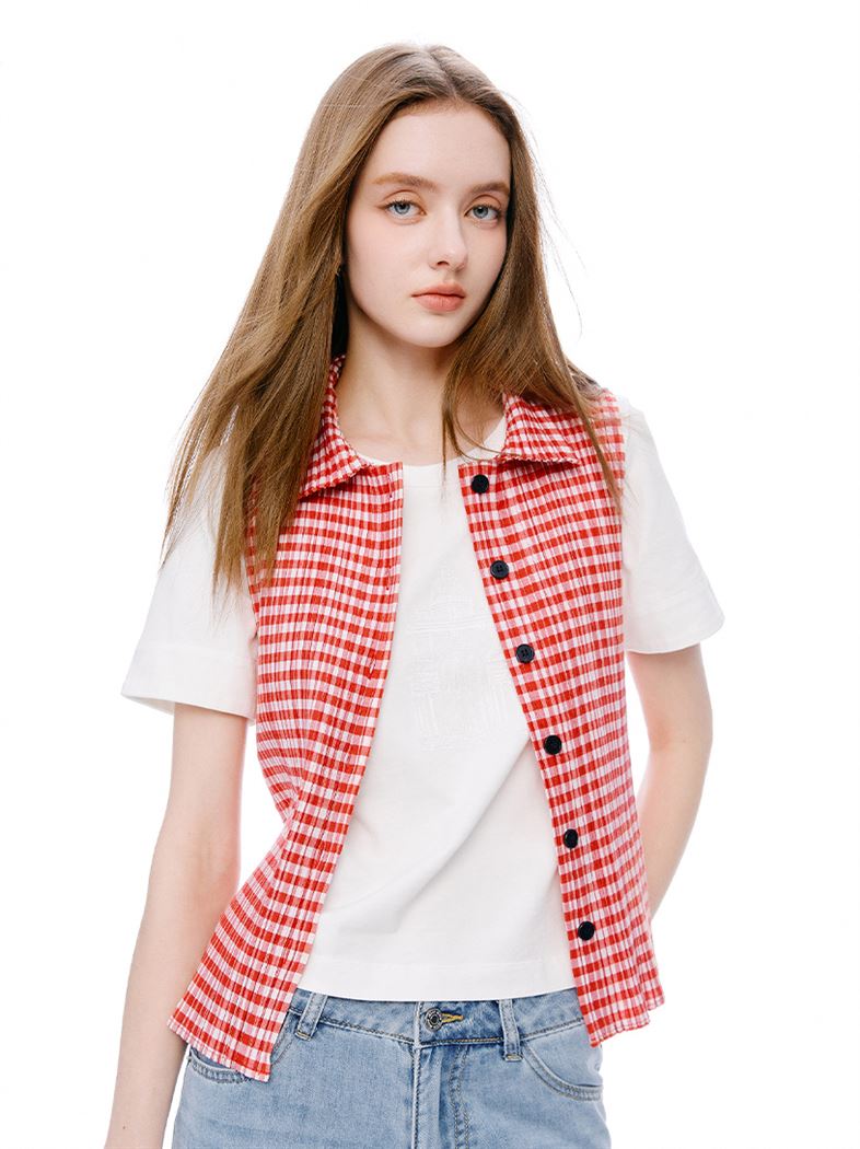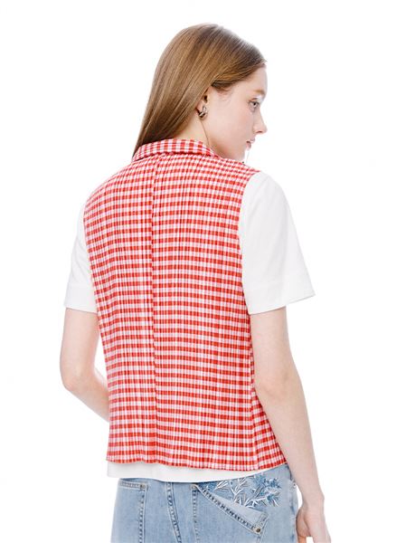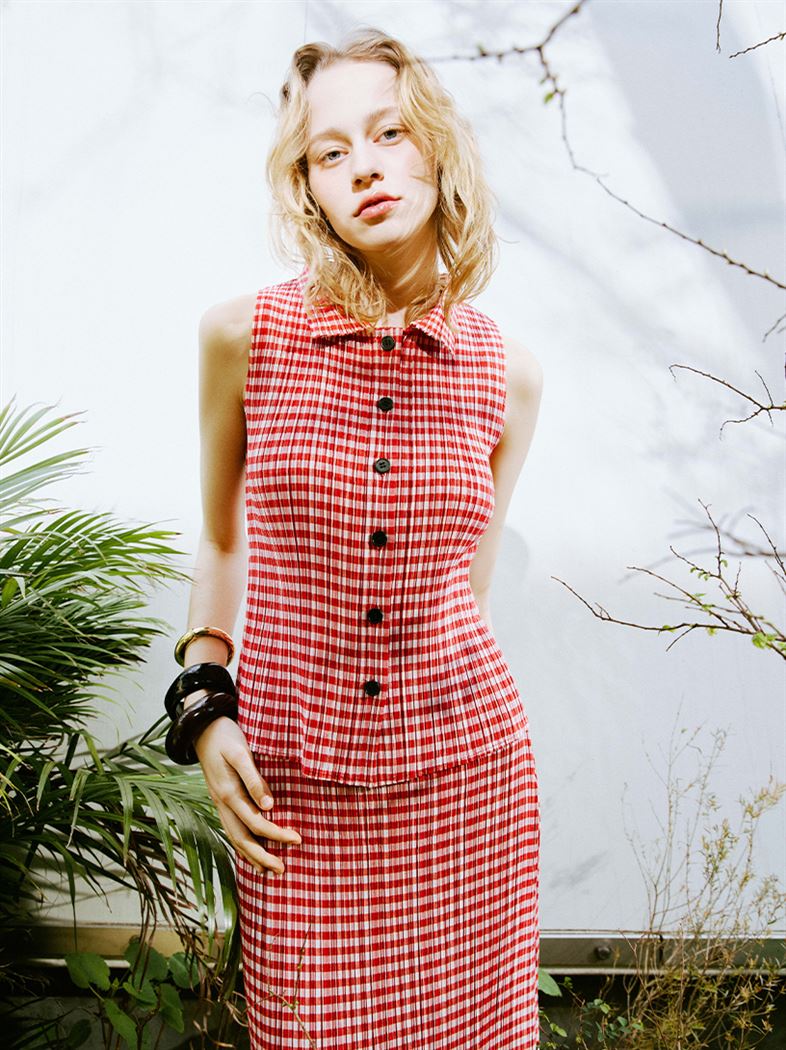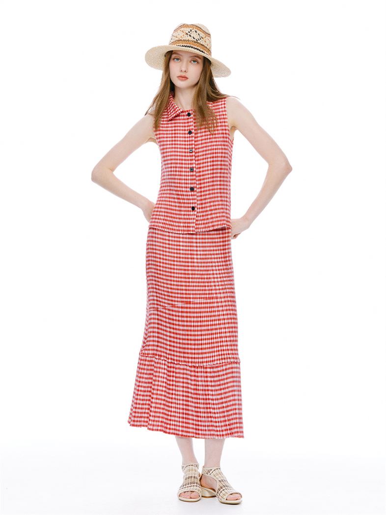 推薦成套穿搭 復古紅格紋壓褶長裙 請點我