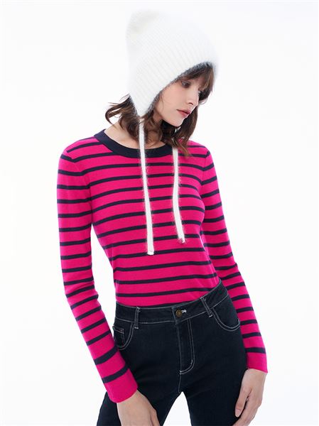 鮮豔跳色條紋字母刺繡針織上衣-桃