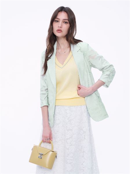 精緻時髦燒花毛邊西裝外套