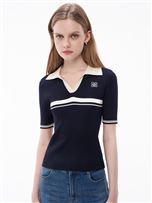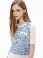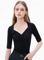 簡約雙層V領冰爽絲五分袖上衣-藍