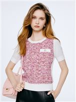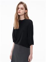 麻花捲邊羊毛混紡針織七分袖上衣-綠