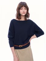 毛感馬海毛假兩件撞色領針織上衣-深藍