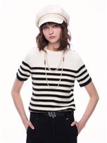 鮮豔跳色條紋字母刺繡針織上衣-綠