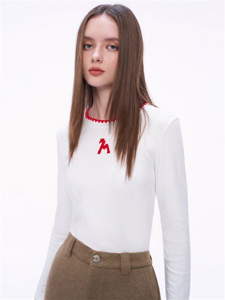 趣味戲團駿馬牙刷繡內刷絨上衣-白