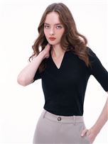 自信美垂墜領斜開衩上衣-淺紫