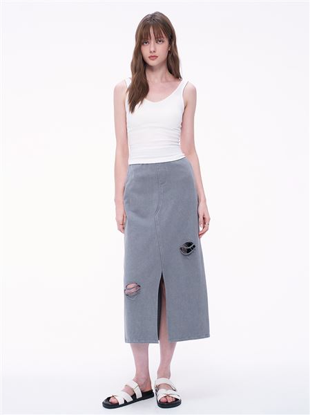 潮流水洗工藝開岔顯瘦直筒裙