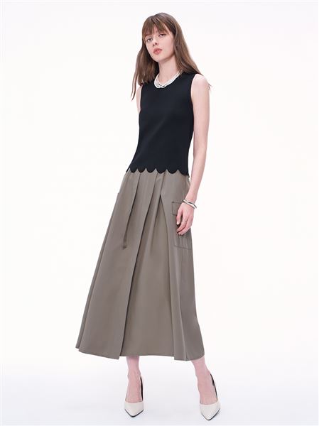率性中高腰開衩工裝A字裙