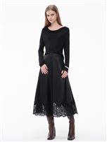 M+ | 精緻女人花邊車股蕾絲皮長裙