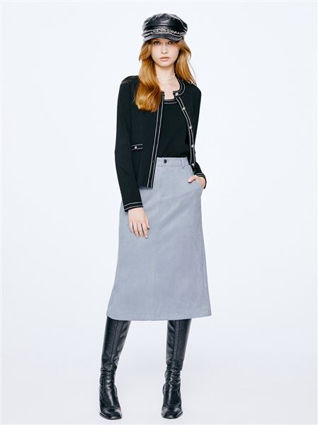 時髦絨感後開衩麂皮鉛筆裙-藍