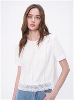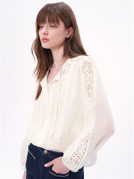希臘神殿蕾絲刺繡泡泡袖上衣