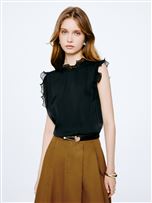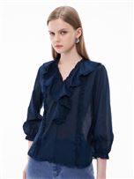 高雅立體花卉綴珠喇叭袖雪紡上衣