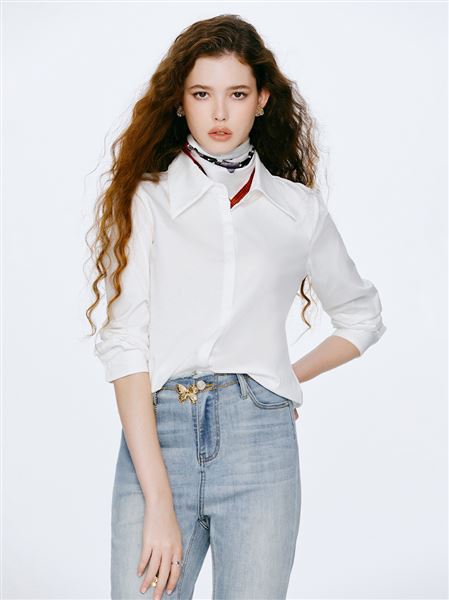 M+ | 低調素面暗門襟絲光棉襯衫-白