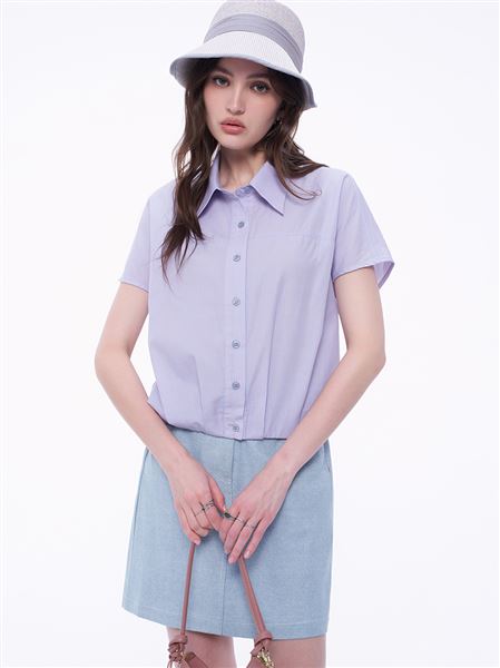 M+ | 絲光空氣感立體抓褶V領上衣-深藍