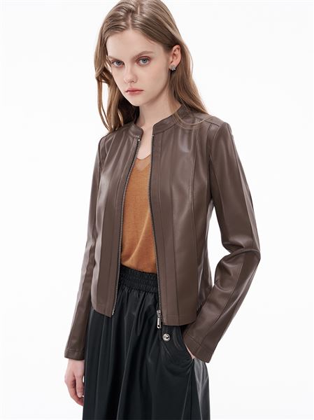 人氣追加 | 親柔車條裁片綿羊真皮賽車外套-咖啡