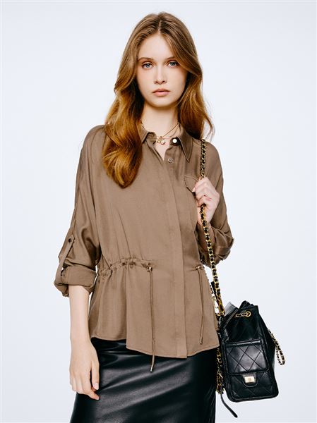 M+ | 絲綢光澤輕透銅氨纖維抽繩暗門襟襯衫