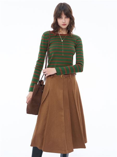 M+ | 美型飄逸仿麂皮壓褶A字裙