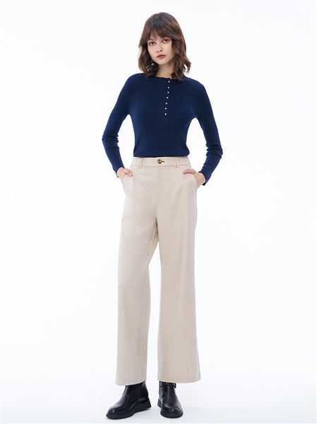 燕麥拿鐵軟糯羊毛混紡顯瘦寬褲