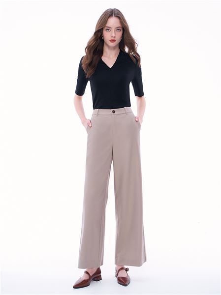 俐落感M字釦羊毛直筒寬褲-咖啡