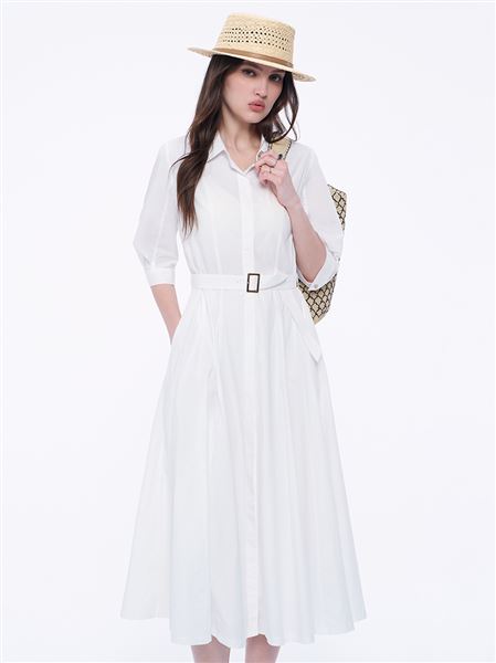 女神泡泡袖襯衫式長洋裝